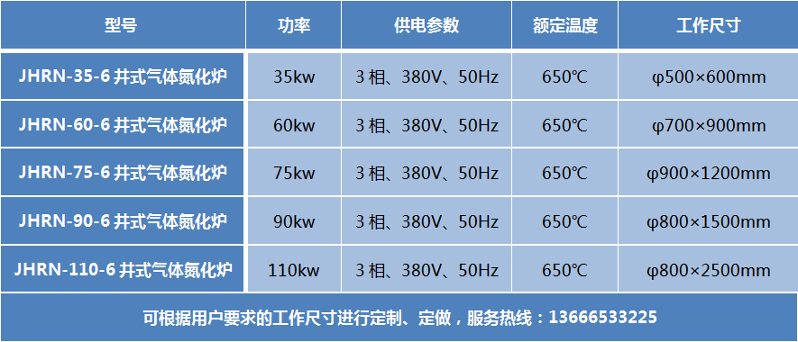 井式氣體氮化爐 此設備可根據用戶要求進行定制、定做,服務熱線:13666533225 井式氣體氮化爐主要用于碳鋼零件的氣體氮化,模具淬火等熱處理之用。該設備裝有滴液裝置,也可進行氣體氮碳共滲(軟氮化)處理。當在不用通氨氣和滴注裝置時,可作為一般井式回火爐使用。